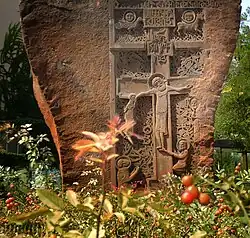 The earliest works of 19th-century Serbian language reformer Vuk Stefanović Karadžić were published in Vienna by a printing house of Armenian Mechitarists. The Mechitarists also published the works of other Serb authors. In total, they printed 37 books and brochures, including The Mountain Wreath by Montenegrin Prince-Bishop Petar II Petrović-Njegoš.[2] A khachkar (Armenian cross-stone), 3 metres (9.8 ft) high and made of volcanic rock, stands at the entrance of the Church of the Archangel Gabriel in the Belgrade municipality of Zemun. The monument was erected in 1993, and it commemorates the Serbian pilots who perished in a plane crash in 1988 while transporting humanitarian aid to Armenia after the country was struck by a catastrophic earthquake.[6]