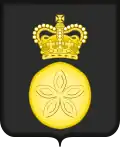 Escutcheon: Sable a sand dollar ensigned by the Royal Crown Or.