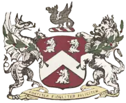 Crest: The tower of the Church of St. Catherine at Honfleur in France with buttresses all Or. Motto: Fiat voluntas dei (May God's will be done)[24] |