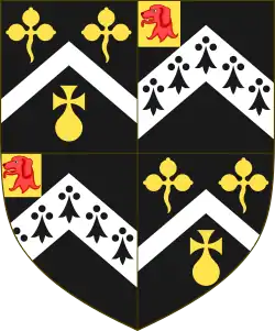 Crest: A lion rampant Gules ducally crowned Or within a bordure engrailed sable bezanty.[16] |