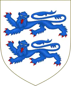 Escutcheon: Argent two lions passant guardant azure, armed and langued gules[7] |