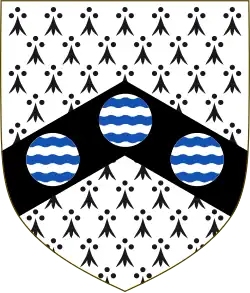 Crest: A Lion's Head erased Sable gorged with a Collar paly wavy of six Argent and Azure |