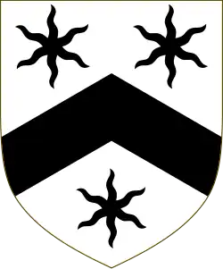 Escutcheon: Argent a chevron between three estoiles of six Sable. |