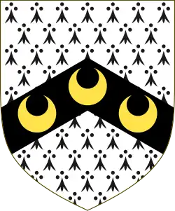Escutcheon: Ermine on a chevron Sable three crescents Or. |