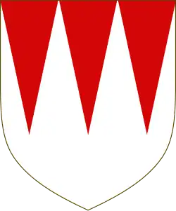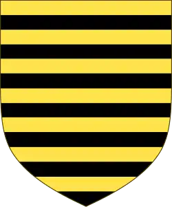 Escutcheon: Barry of fourteen Or and Sable.[1] |