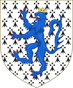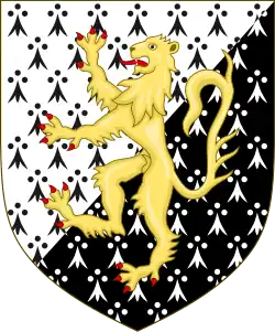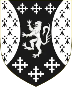 Escutcheon: Per bend sinister Ermine and Ermines a lion rampant Or.[13] |