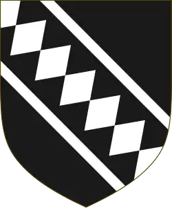 Escutcheon: Sable a bend fusily cottised Argent. |