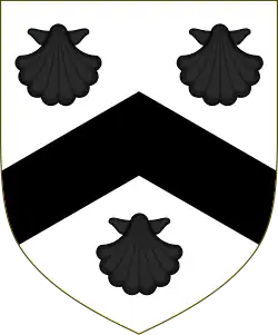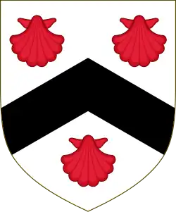 Escutcheon: Argent a chevron between three escallops Sable. |
