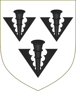 Escutcheon: Sable a fess Ermine between three bells Argent.[7] |