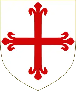 Escutcheon: Or a cross formée extending to the extremities of the shield chequy Or and Sable. |