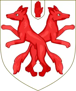 Escutcheon: Argent two foxes counter-salient Gules. |