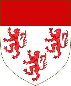 Escutcheon: Argent three lions rampant and a chief Gules. |