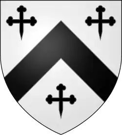 Escutcheon: Argent a chevron between three crosses bottonée fitchée Sable. |