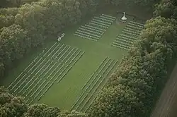 Opposite the Airborne Cemetery is a civilian graveyard with a small Commonwealth War Graves Commission plot containing the graves of nine airmen shot down shortly before the battle.[13] It is also home to Lipmann Kessel, a surgeon with the 16th (Parachute) Field Ambulance during the battle, who wished to be buried near his men after his death in 1986.[13] Similarly, the Moscowa Cemetery three miles east contains the graves of thirty six aircrew killed before the battle, and one unidentified soldier.[20] Not all of the Allied dead from the Battle of Arnhem are interred at the cemetery. Some 300 men who were killed when flying into battle, while trying to escape or who succumbed to wounds later, are buried in civilian cemeteries in the Netherlands, Belgium, the UK and the USA. Sixty men who died in prisoner of war camps after the battle are buried in Germany.[8]