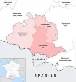 3. ^ "Arrêté préfectoral modifiant les limites des arrondissements de l'Ariège, 29 December 2016" (PDF). pp. 4–13. Retrieved 2019-10-23.
