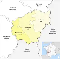 The 3 arrondissements of the Corrèze department are:[1][2]