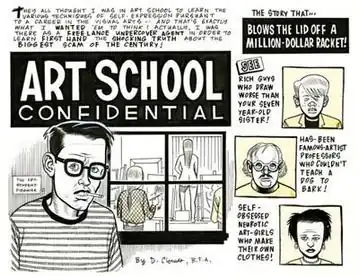 literally something where I had four pages left (in Eightball 7) and I had to turn the issue in. I said, "Well, I'll do something about art school that will amuse my 10 friends who went." I really thought nobody else would comment on it or even notice. As it turned out, every single one of my readers was either in art school or had some affiliation with it. They all responded overwhelmingly (and) were all certain I had gone to the same art school they had. The story took on a life of its own for a while.… People would Xerox it and put it up on the bulletin board at school. Somebody else would take it from there and Xerox it again. There were rumors that it had been Xeroxed so many times that nobody could discern the art style anymore. It became a kind of folk art.[1]