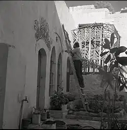 Artists began to settle in Safed before the establishment of the state.[3] Isaac Frenkel Frenel one of the first Safed painters, began to paint the city in the 20s of the 20th century [4] and settled in the city as early as 1934. In 1942 Frenkel organized the first exhibition of paintings in Safed, (the entrance fee was only one penny).[3] Frenkel was one of the founders of Safed's Artists' Quarter, although he did not see himself as part of the artists' community.[3] Members of the founding core of artists include: Shimshon Holtzman, Aryeh Lerner and his painter wife Hanna Lerner, Aryeh Merzer, Isaac Frenkel, Moshe Castel and Menachem Shemi. The artists were given support and encouragement by Safed's first mayor, Moshe Pedatzur.[5][6]