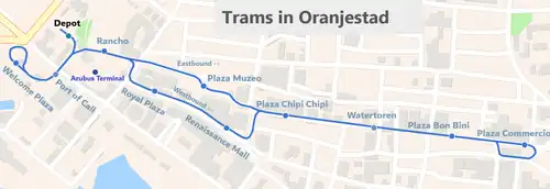 2. ^ "Oranjestad Tramway map (tramz.com)".