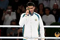 Asadkhuja Muydinkhujaev (Uzbek: Asadxoʻja Moʻydinxoʻjayev, born 5 May 2001) is an Uzbek boxer, gold medalist of 2023 IBA Men's World Boxing Championships in welterweight category[1] and bronze medalist of 2022 Asian Amateur Boxing Championships that held in Amman, Jordan.[2] Asadkhuja also won gold at the 2024 Summer Olympics in the welterweight category.
