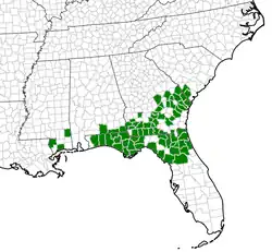 This species is found in the Southeastern Coastal Plain from eastern South Carolina, down to the Florida panhandle, and west to southern Mississippi. It was also historically found in North Carolina, but is now extirpated.[4] Its native habitats include pine-wiregrass savannas, flatwoods, sandhills, bogs, and pine-scrub oak ridges.[2][3]