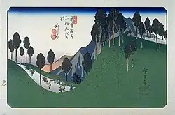 Hiroshige's print of Ashida-shuku, part of The Sixty-nine Stations of the Kiso Kaidō series