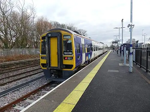 The main construction phase began in autumn 2022, with the line (partially) and station reopening on 15 December 2024.[33] Services are expected to call additionally at Bedlington, Blyth Bebside & Northumberland Park from 2025.