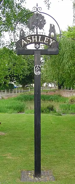 Ashley is a village and civil parish in the East Cambridgeshire district of Cambridgeshire, England, about 4 miles (6.4 km) east of Newmarket. The modern village consists of the two ancient parishes of Ashley and Silverley. Ashley covers 2,250 acres (910 ha) and in the 2011 census had a population of 749.[1] Ashley is in the electoral area of Cheveley ward.