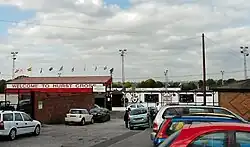 The club initially played at Holebottom on Smallshaw, before moving to Rosehill and then to nearby Hurst Cross for their first fixture played on 27 September 1884, making the ground one of the oldest football venues in the world.[3] The following year saw a record crowd of over 9,000 attend a Lancashire Senior Cup match against Blackburn Rovers.[3] Floodlights were installed in 1953 and inaugurated with a 4–3 win over Wigan Athletic on 29 September that year; club record goalscorer Stuart Dimond getting the club's first goal under lights. During the 1954–55 season Hurst Cross staged the first Football Association-approved floodlit competition, the Lancashire and Cheshire Floodlit Cup. Ashton United, Wigan Athletic and Nelson of the Lancashire Combination and Mossley, Macclesfield Town, Droylsden, Hyde United and Stalybridge Celtic from the Cheshire County League were invited to compete for the trophy, eventually won by Hyde United. The competition was repeated the following season with Winsford United taking the place of Wigan Athletic; Hyde United were again successful.