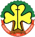 The emblem of the Association des Scouts et Guides du Sénégal incorporates elements from the badges from Guides and the Scouts: the tree from the coat of arms of Senegal, a Fleur-de-lis on top of a trefoil, a cross and on the banner SGDS.