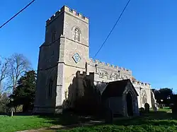 The churchyard of the parish church of St Peter is considered by some as being one of the prettiest in the county.[2] The Grade II-listed church dates from 1154 and includes a 14th-century window, bells dating from the 15th and 17th centuries, and a clock installed in 1774. It was closed to public worship in 2015, and in 2025, the church was put up for sale with planning permission for conversion into a three-bedroom home.[3]