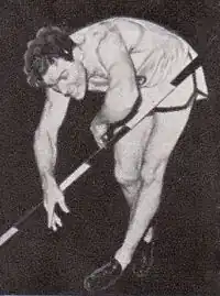 The men's pole vault was an event at the 1956 Summer Olympics in Melbourne, Australia. Nineteen athletes from 12 nations competed.[1] The maximum number of athletes per nation had been set at 3 since the 1930 Olympic Congress. The final was held on the third day of the track and field competition, on Monday November 26, 1956.[2] The event was won by Bob Richards of the United States, the nation's 13th consecutive victory in the event. Richards was the first (and, through 2016, only) man to successfully defend Olympic gold in the pole vault; he was also the first (and, through 2016, only) man to win three total medals in the event. For the second straight Games, the American team went 1–2, this time with Bob Gutowski taking silver. Georgios Roubanis's bronze was Greece's first pole vault medal since 1896, and Greece's first Olympic medal overall since 1920.