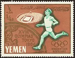 ![]() Yemeni stamp commemorating 1964 Olympic athletics | ||||||||||