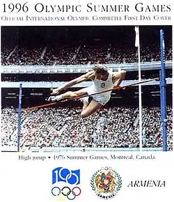 1996 Armenian stamp commemorating 1976 high jump, depicting Jacek Wszoła | ||||||||||