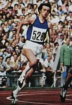 The men's 200 metres was an event at the 1980 Summer Olympics in Moscow. The competition was held on July 27, 1980, and on July 28, 1980.[1] There were 57 competitors from 37 nations.[2] The maximum number of athletes per nation had been set at three since the 1930 Olympic Congress. The event was won by 0.02 seconds by Pietro Mennea of Italy, the nation's first victory in the event since 1960 and second overall (tied for second-most with Canada behind the United States' 12 wins). This winning margin remains the narrowest in this event at the Olympics since the introduction of fully automatic timing. Great Britain earned its first medal in the men's 200 metres since 1928 with Allan Wells' silver. Don Quarrie of Jamaica, the defending champion, took bronze. Mennea (the 1972 bronze medalist) and Quarrie were the fifth and sixth men to earn multiple medals in the event.