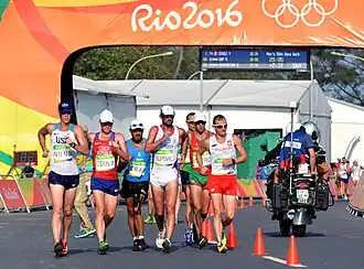 ![]() View of a chasing group during the men's 50 kilometres walk | |||||||||||||