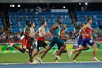 ![]() From L-R: Kurt Felix, Kai Kazmirek, Thomas Van der Plaetsen, Luiz Alberto de Araújo, Damian Warner, Ashton Eaton and Adam Helcelet in the second heat of the 1500 metres, the final event of the decathlon | |||||||||||||