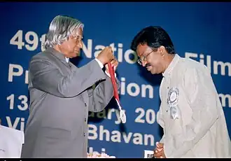 P. Sheshadri receiving the National Film Award for Best Feature Film in Kannada from President A. P. J. Abdul Kalam