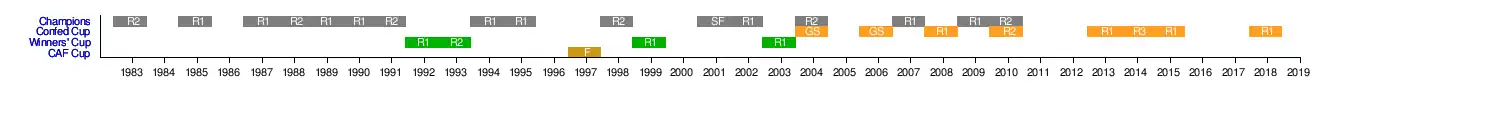 PR = Preliminary round, R1 = First round, GS = Group stage, R32 = Round of 32, R16 = Round of 16, QF = Quarter-finals, SF = Semi-finals, RU = Runner-Up, W = Winner