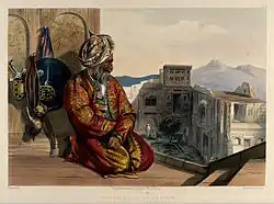 1. ^ a b "Atmaran, Hindoo of Peshawar". Retrieved 15 July 2023. "Atmaran, Hindoo of Peshawar" is the title of a coloured lithograph made by E. Walker (d. 1882), based on the work of James Rattray (1818-1854), who was based in Afghanistan during the First Anglo-Afghan war (1838-1842). Atmaram was a Hindu from Peshawar in modern northern Pakistan, who had become the 'minister' of a local Muslim and Uzbek ruler in northern Afghanistan, Mohammad Murad Beg of Kunduz.