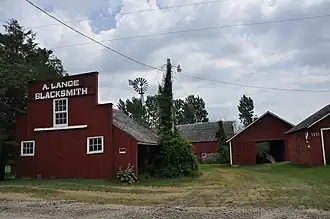 The contributing buildings include the Shimer-Boehringer-Lange Cottage, which is composed of three sections. The original part of the house Is the Shriner cottage that was built on this property sometime before 1887. The Lange's moved in when they bought the property and raised their seven children here. The Boehringer cottage was added around 1900 after Conrad and Johanna Boehringer, Justena's parents, died.[2] Other contributing buildings include the barn (c. 1900), blacksmith shop (c. 1900), smokehouse (1908), chicken house (1911), milk house (c. 1912), and a shed (c. 1912). The windbreak around the domestic area was planted by Lange around 1900, and is one of the contributing structures as is Spring Creek Road and the farmyard drive which are counted together. A concrete planter built by Lange in 1917 in La Porte City and relocated here in 1986 when the house was torn down is the contributing object.