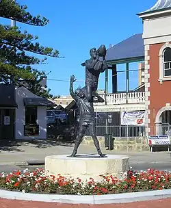 Statue by Robert Hitchcock outside the gates Fremantle Oval of the famous "specky" by South Fremantle Football Club's John Gerovich over East Fremantle Football Club's Ray French at the 1956 WANFL preliminary final.