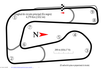 The Autódromo de Concepción del Uruguay is a 4.279 km (2.659 mi) racing circuit for motorsport competitions, located on the outskirts of the city of Concepción del Uruguay, in the Argentine Province of Entre Ríos. The circuit is one of three in the province, with the two other courses being in Paraná and Concordia, both of which are considered national category racing circuits. The circuit was formerly the longest circuit in the province until the circuit in Concordia was reconfigured, with the new length being 4.700 km (2.920 mi), 0.421 km (0.262 mi) longer than the Autódromo de Concepción del Uruguay in its full layout.[1][2]