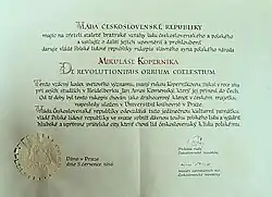 43. ^ a b c d "Poland- Nicolaus Copernicus's masterpiece "De revolutionibus libri sex." (ca 1520)". Archived from the original on 2016-03-04. Retrieved 2009-04-28. In 1956 the government of Czechoslovakia gave it to the government of the Polish People's Republic.