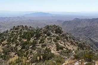 Significant species that live in the desert include desert bighorn sheep, desert tortoise, and golden eagles.[14] The Mojave Desert has more than 200 endemic plants.[7] A significant habitat of the Joshua Tree is in the western portion of the monument.[10] The majority of the area (330,000 acres) was designated as the Piute/Eldorado Area of Critical Environmental Concern in 1996 to conserve critical habitat for the threatened desert tortoise.[15][16]