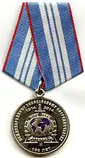 Awarded to officers, civil servants and employees of the organs of the Ministry of Internal Affairs of Russia, and to other citizens of the Russian Federation and foreign nationals, for significant contribution in assisting and supporting bodies of the Interior Ministry of Russia in the fight against crime, for the active promotion and enhancement of the prestige of service in law-enforcement bodies; for active cooperation with the Ministry of Internal Affairs of the Russian Federation in the framework of international programs to combat crime; for the most talented scientific work and work in literature and the arts that have received public recognition and made a significant contribution in solving the tasks entrusted to the Ministry of Internal Affairs of the Russian Federation. Can be awarded individually or as part of organizations, associations, or art groups.[11][12] |