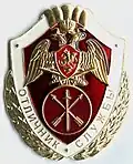 Decoration "Excellent Service in Military Protection Units of Important State Facilities, Special Goods and Communications Facilities" Знак отличия "Отличник службы в воинских частях, выполняющих задачи по охране важных государственных объектов, специальных грузов, сооружений на коммуникациях" |