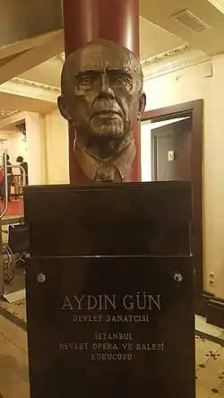 Aydın Gün; (1917, Adana - November 30, 2007, Berlin), was a Turkish opera singer, stage director, founder and intendant of Istanbul Opera House.[1] He was a pioneering figure in the Turkish opera scene and a founding member of the IKSV. [2]