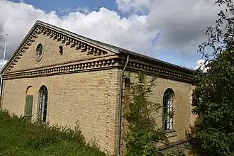 In 1860, the plans were revived by Edward Tesdorpf. Tesdorpf, a prominent politician and president of the Danish Agricultural Society (Landhusholdningsselskabet), was the owner of Orupgaard and Gjedsergaard. He envisioned the project as a model for other similar projects in other parts of the country. He was the driving force behind the foundation of I/S Bøtø Nors Udgravnings- og Inddæmnings-selskab. A dyke, 19 km long and 3 m tall, was built along the coast and a system of canals was also constructed. Bøtø Nor Pumping Station was built at Marrebæk in 1870 and 1871. It contained a Burmeister & Wain steam engine and a wooden Archimedes' screw.[1]
