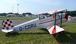 The aircraft was designed to be suitable for aerobatic manoeuvres and training activities.[4] It featured numerous conventional features for such aircraft at that time, being a biplane with two open cockpits in tandem along with fixed landing gear.[4][3] Both the upper and lower wings were broadly identical in terms of design, to the extent that they could be readily interchanged with on another.[3] Accordingly, all of the wings, which had an 11 degree sweep back and positive stagger, were equipped with ailerons. The wings had a structure largely composed of I-section wooden spars along with a fabric covering.[4]